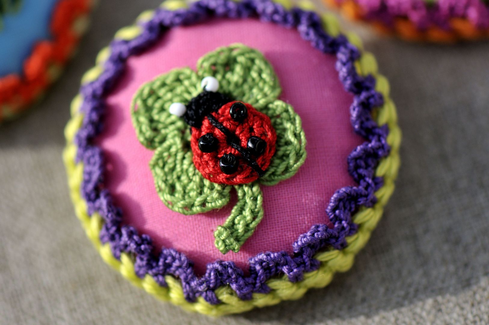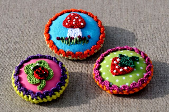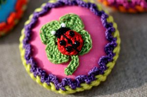Trois petites broches aux couleurs pétillantes pour fêter l’arrivée du soleil… (Oups ! Serais-je en avance pour le défi 13 de mai ?)