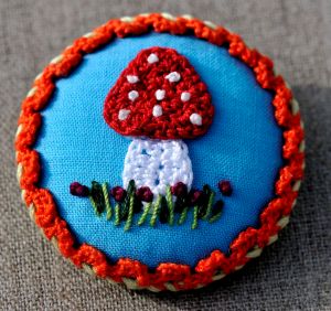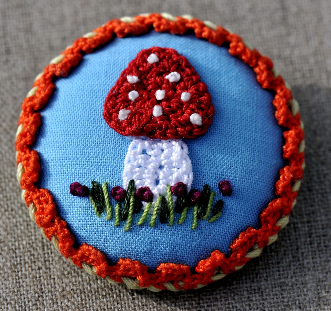 Toujours du crochet, des bouts de tissus, quelques aiguillées de coton à broder et des perles de rocaille.