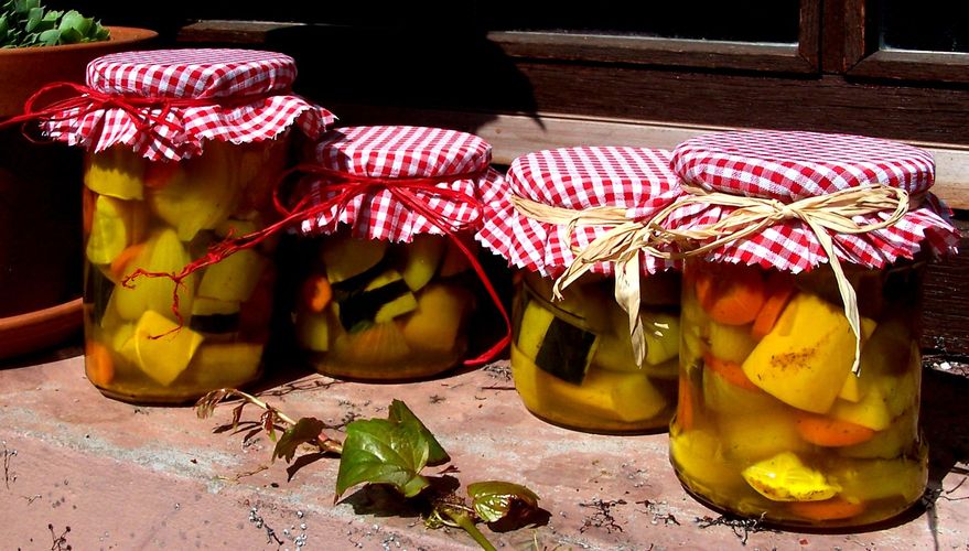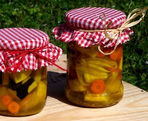 Dans un saladier, mélanger 1 kg de courgettes pelées, épépinées et coupées en morceaux avec ½ tasse de sel, couvrir d’eau et laisser reposer 2 h. On peut rajouter quelques rondelles de carottes ou des morceaux de poivrons rouges.