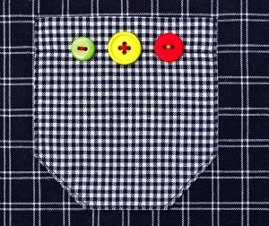 Rajouts de divers petits boutons et d’une étiquette ABC brodée.