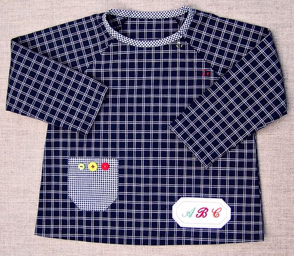 Très mignon cet ensemble ! Le tablier fait vraiment écolier ! les imprimés sont parfaits ! Et jolie étiquette