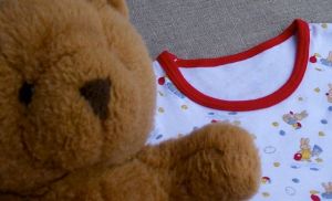 d’un précédent petit pyjama, il me restait un morceau de jersey imprimé…