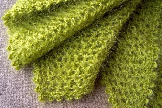 Un « foulard caresse »  au crochet, en laine mohair toute douce…