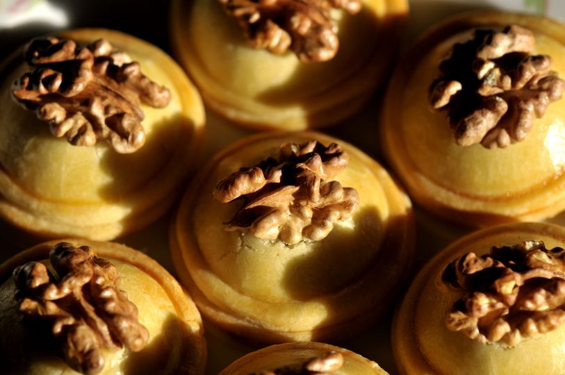 Souder un demi-cerneau de noix sur chaque petit four.