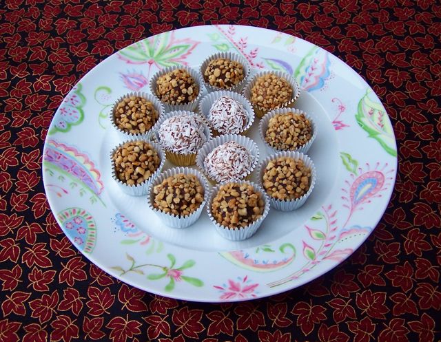 Laisser refroidir et mettre au frigo. Quand la pâte est bien dure, former des boules et les rouler dans le croquant, ou l’enrobage choisi.