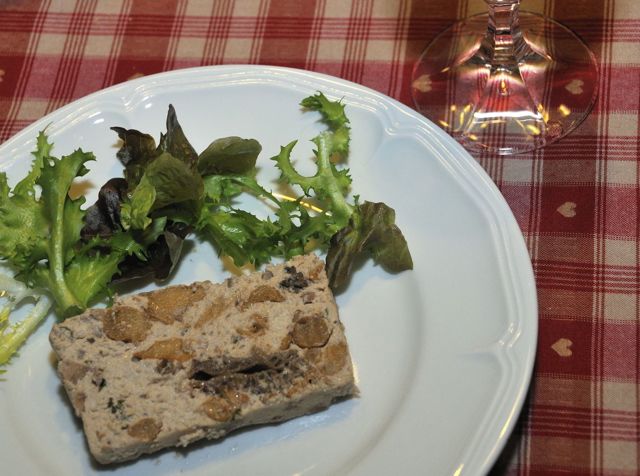 En entrée, une terrine de champignons, d’après une recette des chefs Régis et Jacques Marcon. Elle avait été proposée dans l’excellente émission culinaire de Joël Robuchon, « Bon appétit bien sûr » (émission passée « à la trappe » en janvier 2009, en même temps que la pub…)