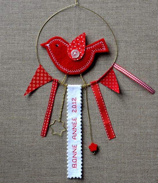 Un petit oiseau à suspendre s’est envolé vers mes frangines, pour leur souhaiter une bonne année et faire venir le printemps (tiens, au fait, il y a eu un hiver ?)… Inspiré d’une idée de Marie-Claire Idées (n°75).