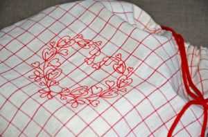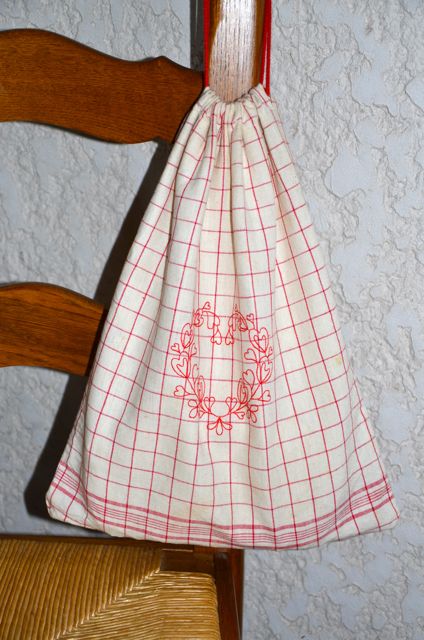 … et un sac pour le pain maison (là, je triche un peu; fait il y a quelque temps déjà), bricolé avec un torchon.