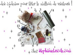 Samedi, son blog a dépassé… le million de visiteurs ! Fantastique, non ? Elle le mérite bien. Alors, pour fêter ça, elle vous propose de gagner un colis plein d' »indispensables » pour bricoler. Pour tenter votre chance, c’est ici.