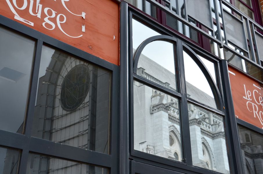 joli jeu culturel dans la photo de la cathédrale dans la vitre du cèdre rouge (un resto libanais ?) et dans la bouche de la louve, un flou de briques ! bravo !