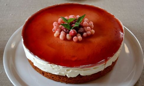 un gâteau de fête, avec nappage au sirop de fruits rouges…