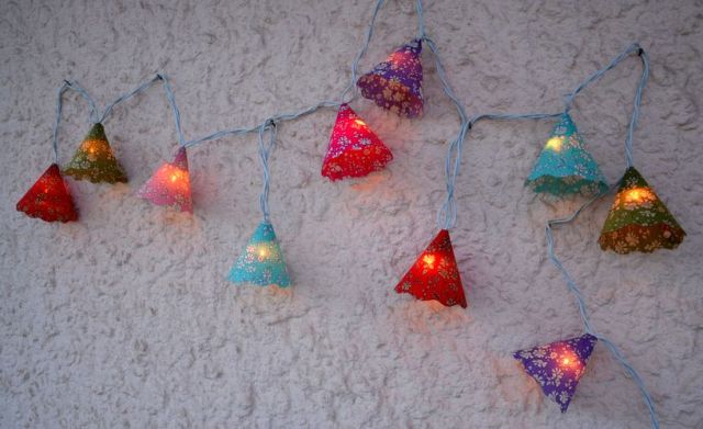 Je ne sais pas ce que je préfère : la guirlande ou le gâteau… Miam ! Chouette idée que de mettre du liberty sur ta guirlande lumineuse.