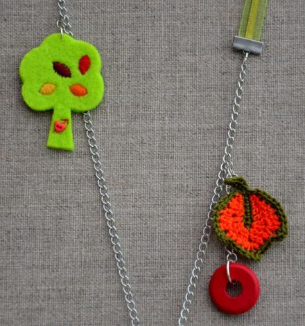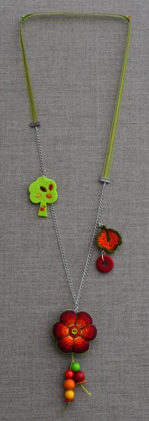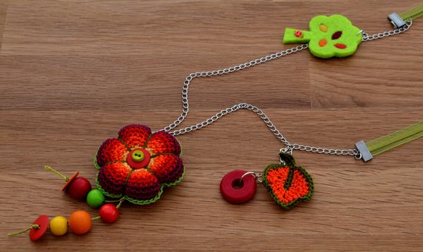 Les grosses perles en bois et l’anneau rouge viennent de « mon petit öko« .
