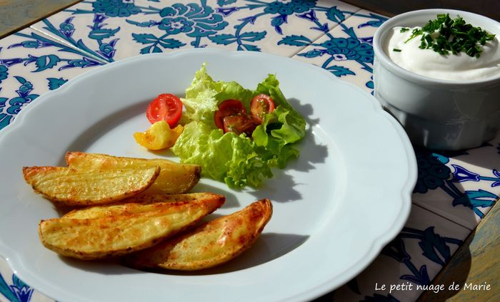Très appétissantes tes pommes de terre! Chez nous, ce sont des pommes de terre à l’étouffée qui accompagnent le fromage blanc à la ciboulette…mais j’ai très envie d’essayer les tiennes! Très jolies lumières du soir…ici aussi une belle journée! bisous