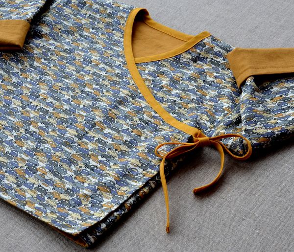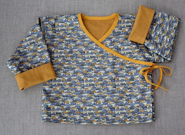 C’est magnifique ! J’aime beaucoup ce tissu, original pour Liberty, j’en avais fait un plaid face voitures/face France Duval encre étoiles argentées. Un peu osé, mais avec le Liberty, on est toujours surpris des associations parfois improbables qu’il est possible de faire. En tout cas cette petite brassière est mignonne comme tout !