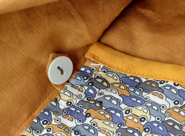 Heureusement, Mamie a du stock… Le joli coton moutarde acheté l’été dernier pour des fonds de coussins (à faire…) a été détourné et s’est révélé parfait ; il a pile poil la couleur des petites voitures.