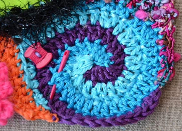 Mais qu’il est beau, ton scrumble !!! Les couleurs vitaminées, le loup crocheté, le paisley brodé (ce sont les prénoms de tes enfants ? ils sont de février ?), la broche, les boutons couture…