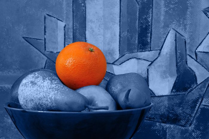 La même, l’orange détourée avec Photoshop, le reste passé en N&B.