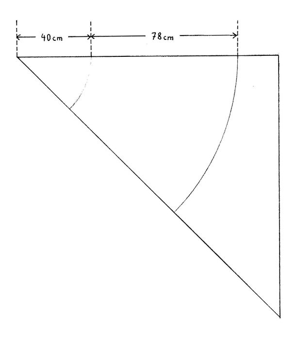 Tracez deux arcs de cercle de 40 cm et de 118 cm de rayon (avec un morceau de fil, noué à un crayon ou à un feutre), et coupez selon ces tracés.
