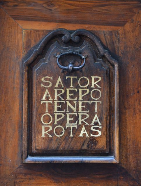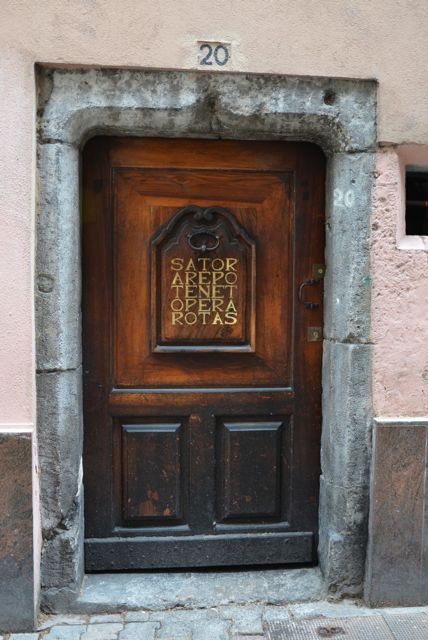 Rue Jean-Jacques Rousseau, à Grenoble, se trouve, sur une porte ancienne, une curieuse et mystérieuse inscription : un carré palindromique de 25 lettres, qui peut être lu dans quatre sens, de gauche à droite, de haut en bas, de bas en haut et de droite à gauche.