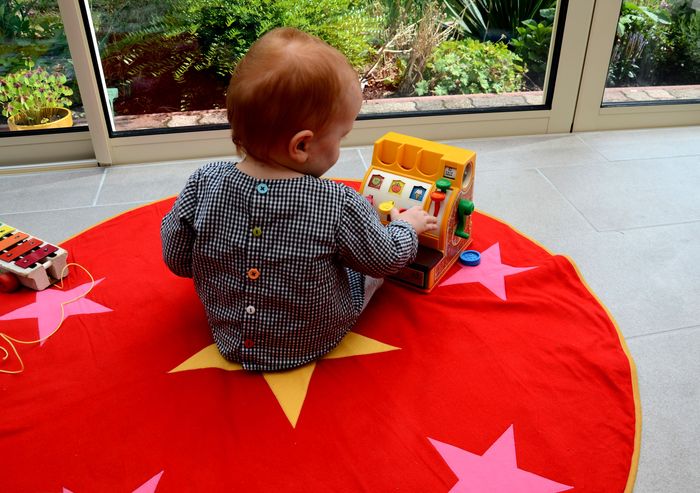 Super ce tapis de jeux, j’aime beaucoup le rouge. La marinière est toute mignonne.