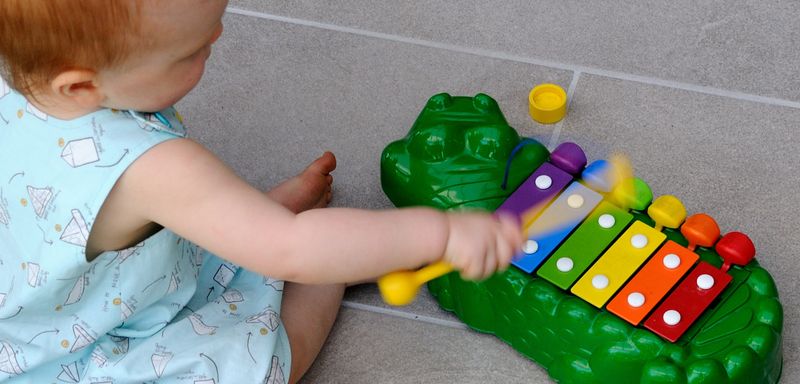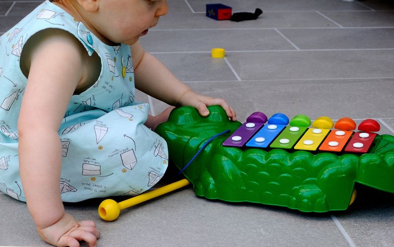 Toujours adorable de voir les enfants découvrir les sons … et je crois reconnaitre à côté la pièce qui va dans la caisse enregistreuse F.Price !!!