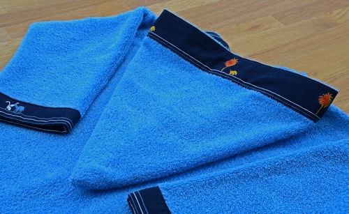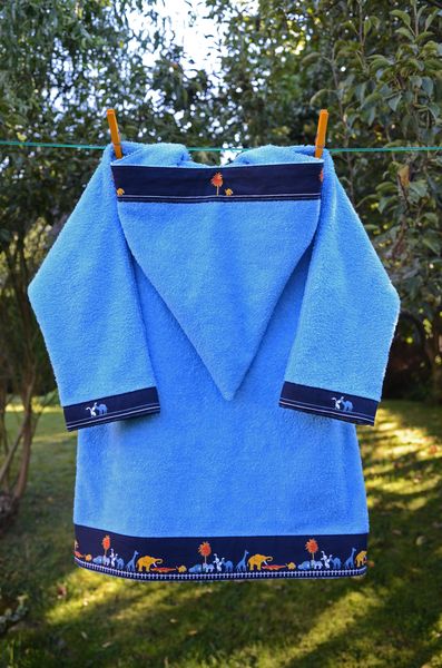 Le tissu éponge, d’excellente qualité, épais et moelleux, vient du marché : un monsieur sympa qui vend des tissus fins de série du prêt-à-porter à des prix défiant toute concurrence (quand il a de l’éponge, c’est d’habitude du « Linvosges »…).