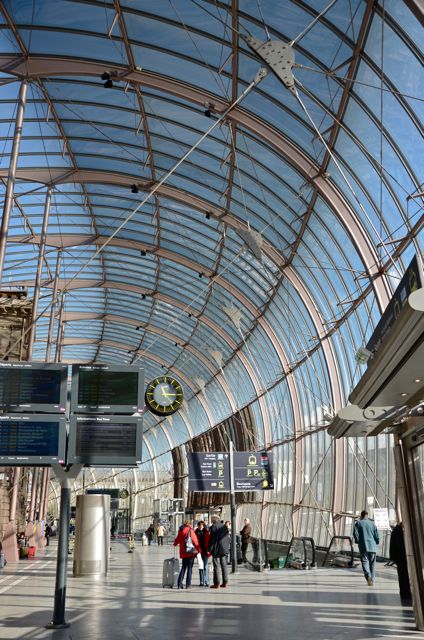 Un beau bidouillage pour des photos abstraites. Je ne connaissais pas la façade du Printemps, mais j’avoue avoir été impressionnée par la verrière qui entoure la gare. Un bel effet de contraste, une atmosphère et une lumière unique à l’intérieur. Il est vrai que l’extérieur est surprenant!
