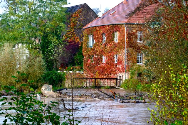 En bonus, l’ancien moulin sur la Blies, et sa vigne vierge flamboyante…