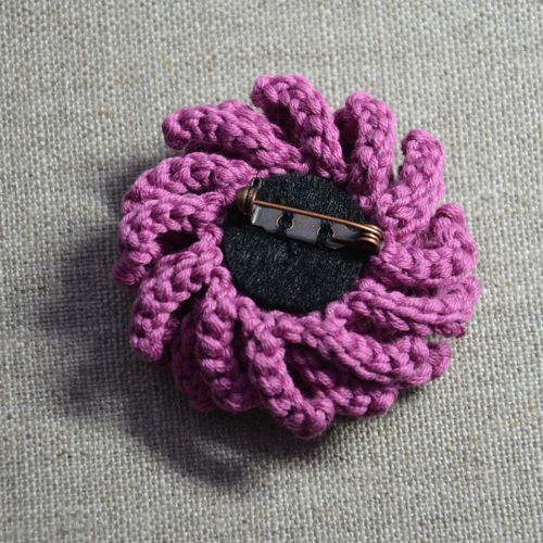 Si vous voulez en faire une petite broche, découpez une rondelle de feutre, cousez-y une épingle à broche, et collez le tout au dos de la fleur.