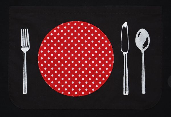 DSC_8124Tissu rouge à pois « Tante Ema ».