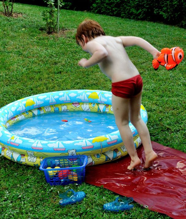 Joli plongeon de Malo! Ici aussi les enfants apprécient les jeux d’eau! L’orage est annoncé pour ce soir , vite vite, on en profite encore! Belle journée avec vos petits loups! Bisous