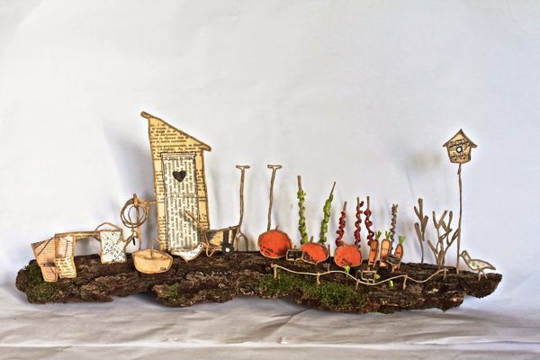 Des réalisations poétiques, en papiers divers et fil de papier kraft armé.