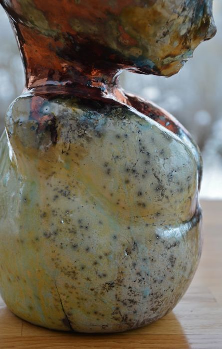 Joli l’émaillage couleur mordoré … je n’avais jamais vu ça en raku … que du marron !