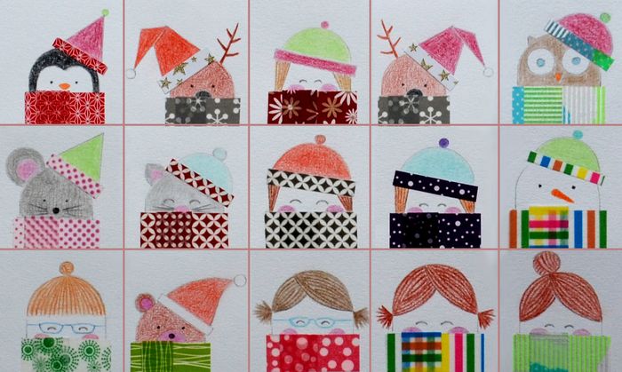 L’idée de départ vient d’ici, du blog mollymoo, où il y a une foule d’idées et de tutos. Je l’ai déclinée sous d’autres formes, en remplaçant les têtes de petites filles par celles de chat, souris, ourson, chouette, renne, pingouin, bonhomme de neige.