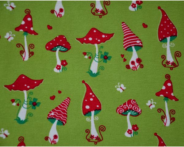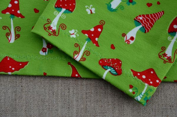 Super le tissu, j’adore les champignons, en plus ils ont l’air très appétissants non!! L’association avec le tissu rouge à pois est tout simplement parfaite. Et puis j’aime bien la forme ainsi que les poches sur le côté.