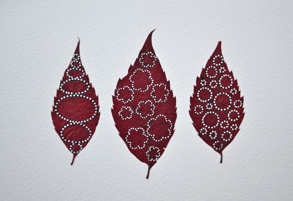 Ce sont des feuilles de quoi? j’adore leur couleur qui se prête merveilleusement bien à tes décors graphiques points blancs sur tracé noir!