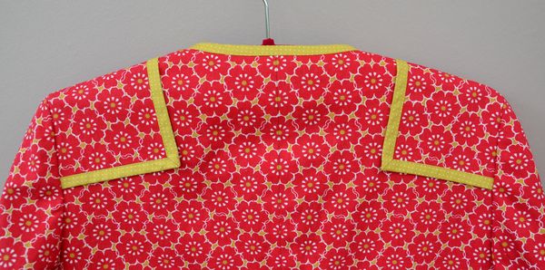Je voyais déjà la veste finie, doublée de ce joli coton à minis pois blancs de « la droguerie », bordée de biais de ce même tissu, dont la couleur rappelle le coeur des fleurs. De plus, il s’agissait d’un patron « cours de couture illustré », expliqué en détail, schémas à l’appui. Donc, tout allait bien se passer, et j’avais hâte de commencer.