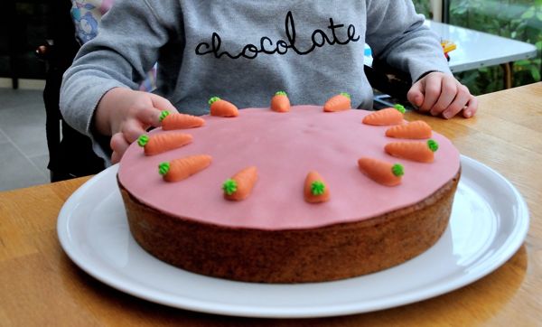 Un régal… C’est bien la première fois que j’ai réussi à faire des photos avant que le gâteau ne soit dévoré, ou que des petits lapins n’aient chipé des carottes.