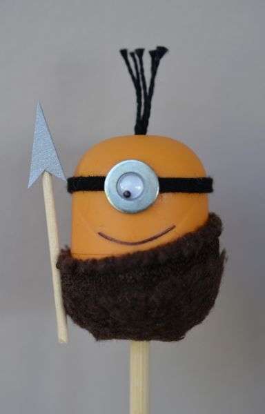 Des cure-dents pour les flèches et le gourdin (recouvert d’une lanière de feutrine marron).