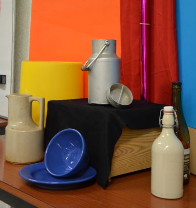 J’ai photographié les objets sous différents angles et j’en ai fait des dessins de différentes tailles. Puis je les ai reportés sur du papier calque pour pouvoir en faire une composition en les superposant.