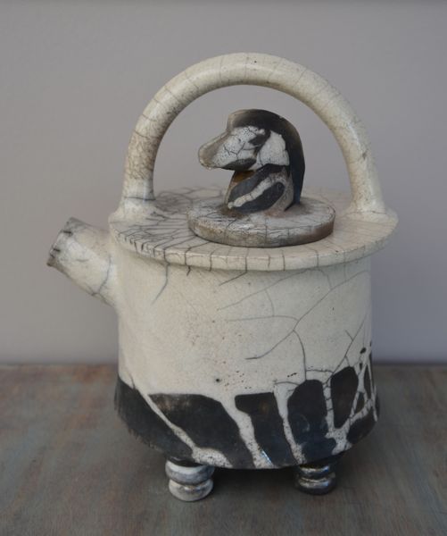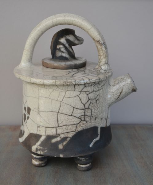 Elle avait eu un petit problème… Je l’avais transportée chez moi pour la terminer, puis je l’ai rapportée à l’atelier. Mais j’ignorais qu’un objet pas encore cuit est très fragile. Quand j’ai soulevé la théière pour la sortir de la caisse où je l’avais rangée, deux des quatre pieds se sont fait la malle. L’énorme ralentisseur à la sortie de mon village y est sans doute pour quelque chose ; même au pas, la voiture est secouée.