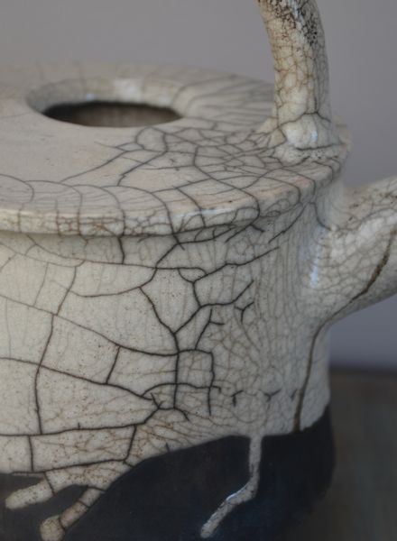 Je ne me lasse pas de l’effet raku. Ces craquelures aléatoires, qu’on découvre lorsque l’objet sort de la caisse d’enfumage, c’est magique…