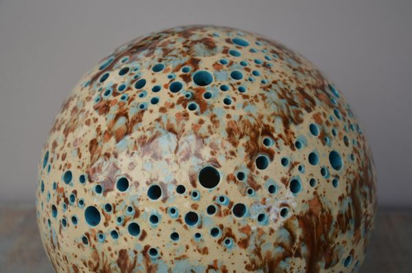 Bravo. C’est magnifique. Tant la poterie noire à l ‘ intérieur rouge que la boule. Celle ci ressemble plus à une sculpture. Félicitations.