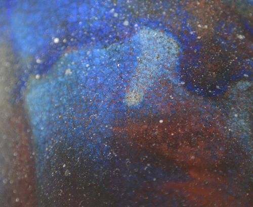 L’intérieur est émaillé, avec le même émail que l’intérieur du vase, mais avec un rendu tout différent, plutôt bleu-gris, mais chouette aussi.