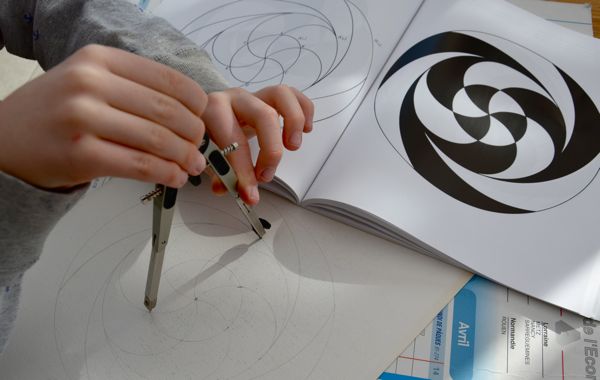 Il était très fier il y a peu d’essayer mon compas (que j’ai gardé depuis ma 6° !!!), et de faire sa première rosace !