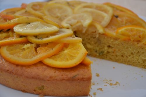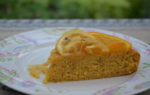 « Gâteau aux citrons et oranges, huile d’olive et thym« , sur le blog « Epices & moi« .