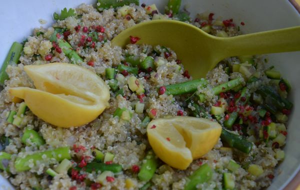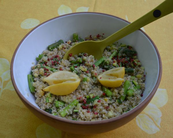 Trouvé sur le site « La cuisine d’Agnès », un taboulé de quinoa aux asperges et au citron confit