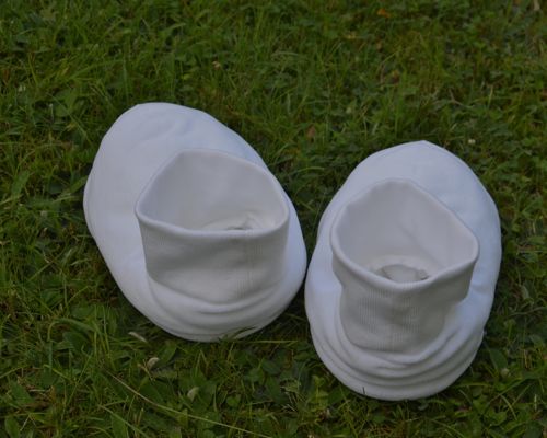 Les chaussons de Maël ne sont pas encore faits. Il pourra essayer ceux de Malo, et je verrai s’ils conviennent ou s’il faut que je bricole un patron plus petit.