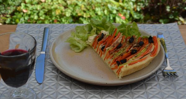 Une bonne part de tarte accompagnée de salade verte : un repas complet.